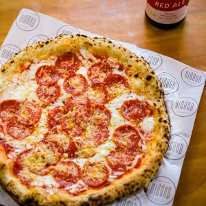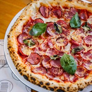 Molho de tomate italiano, mozzarella de búfala, pepperoni picante, azeite de oliva e peperoncino